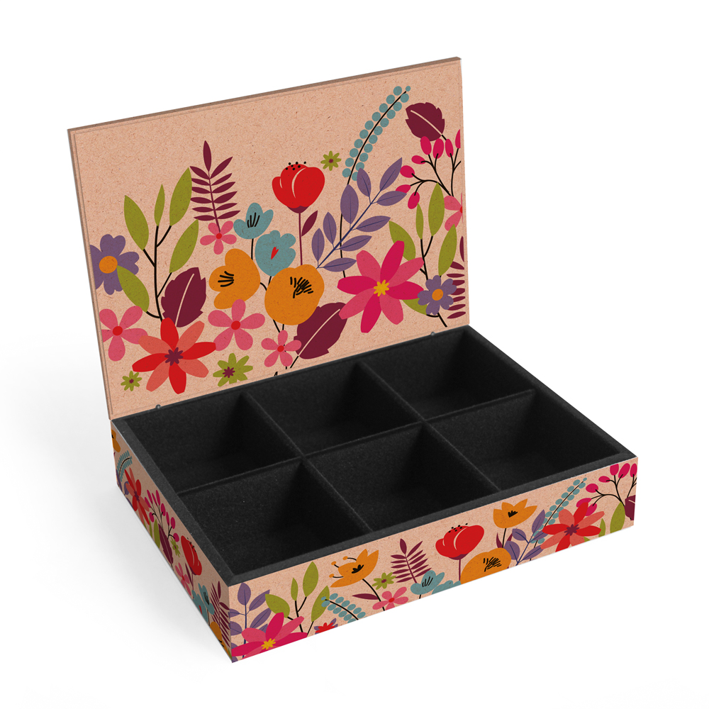 O Porta-joias M Floral Kraft combina funcionalidade com um design encantador, trazendo mais organização para o dia a dia. Com 6 divisórias internas, permite separar e encontrar facilmente joias, bijuterias ou pequenos itens que você gosta de ter sempre à mão. O acabamento aveludado protege com delicadeza, e a estampa autoral dá um toque especial ao ambiente. Um presente criativo que une beleza e utilidade em uma só peça!