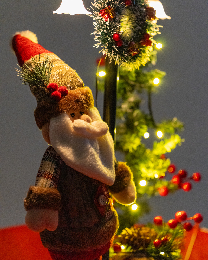Poste Natalino com Papai Noel, Luzes e Efeito de Neve – Decoração Interativa Premium Leve a magia do Natal para o seu ambiente com este cenário natalino exclusivo, que combina tecnologia, movimento e design temático europeu. Um verdadeiro espetáculo visual com neve artificial caindo ao redor de um charmoso Papai Noel e uma mini árvore iluminada, criando uma atmosfera encantadora e irresistível. ________________________________________ Principais Atrações do Produto: Sistema de neve em movimento – A neve cai continuamente, criando um efeito realista e mágico, perfeito para encantar visitantes e criar memórias inesquecíveis. Figura exclusiva do Papai Noel – Com acabamento sofisticado em tecido premium, detalhes acolchoados e design nórdico, transmite aconchego e carisma. Mini árvore iluminada com LED quente – Decorada com galhos realistas, frutos vermelhos e luzes brilhantes que trazem aconchego e elegância. Poste vintage iluminado – Iluminação suave no topo cria o cenário perfeito para destacar os elementos natalinos. Guirlanda decorativa com presentes e neve – Toque clássico que simboliza boas-vindas e eleva a percepção de valor do produto. Pacote cenográfico com pinhas e laço rústico – Enriquecido com detalhes naturais, reforça o estilo europeu da decoração. Base em formato de guarda-chuva decorado – Exclusiva, coleta a neve e traz movimento visual com a frase temática “Merry Christmas”.