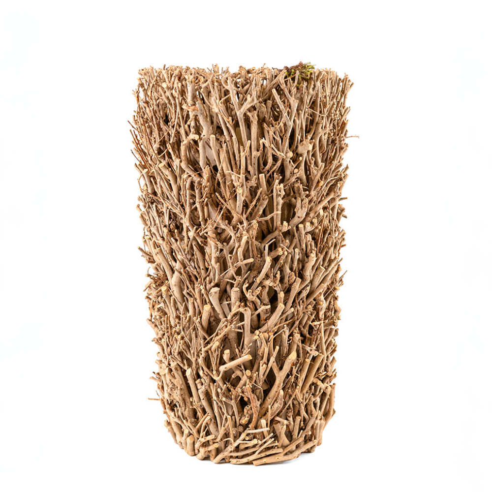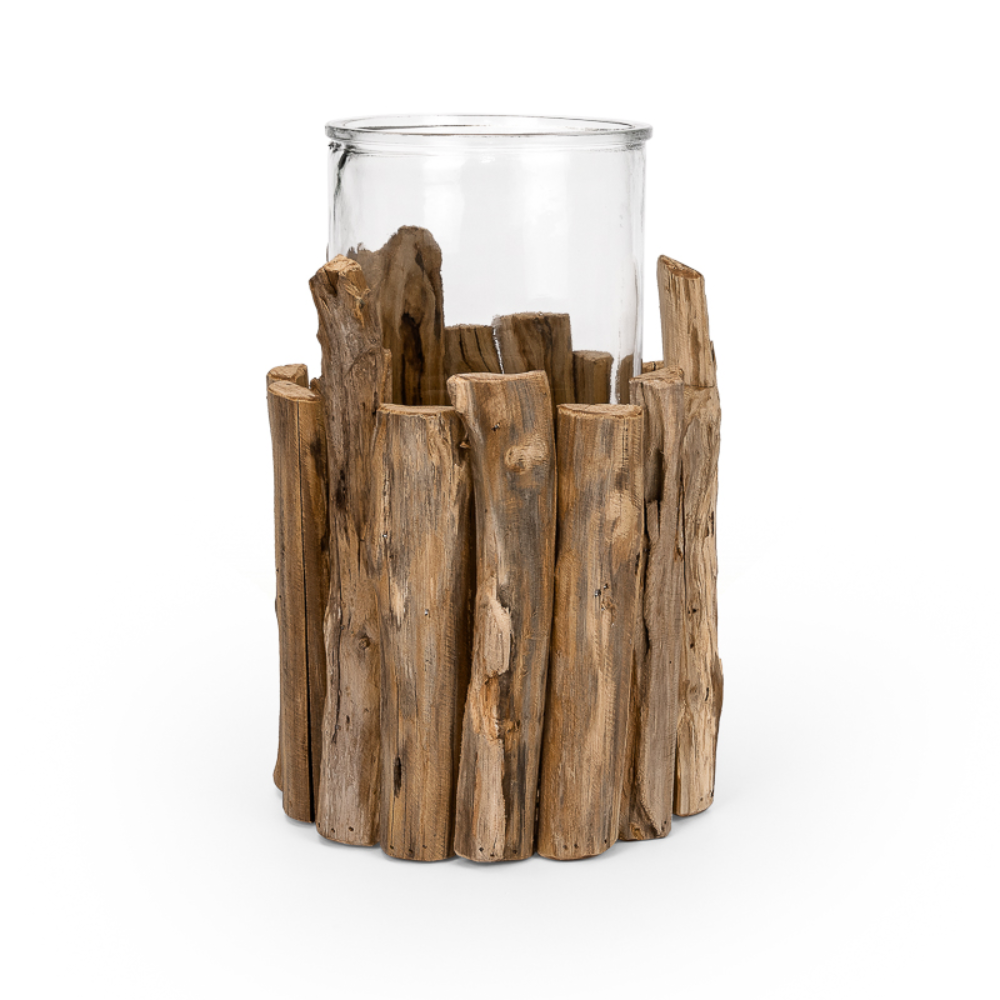 Vaso Vidro Com Lascas De Madeira Rústico G