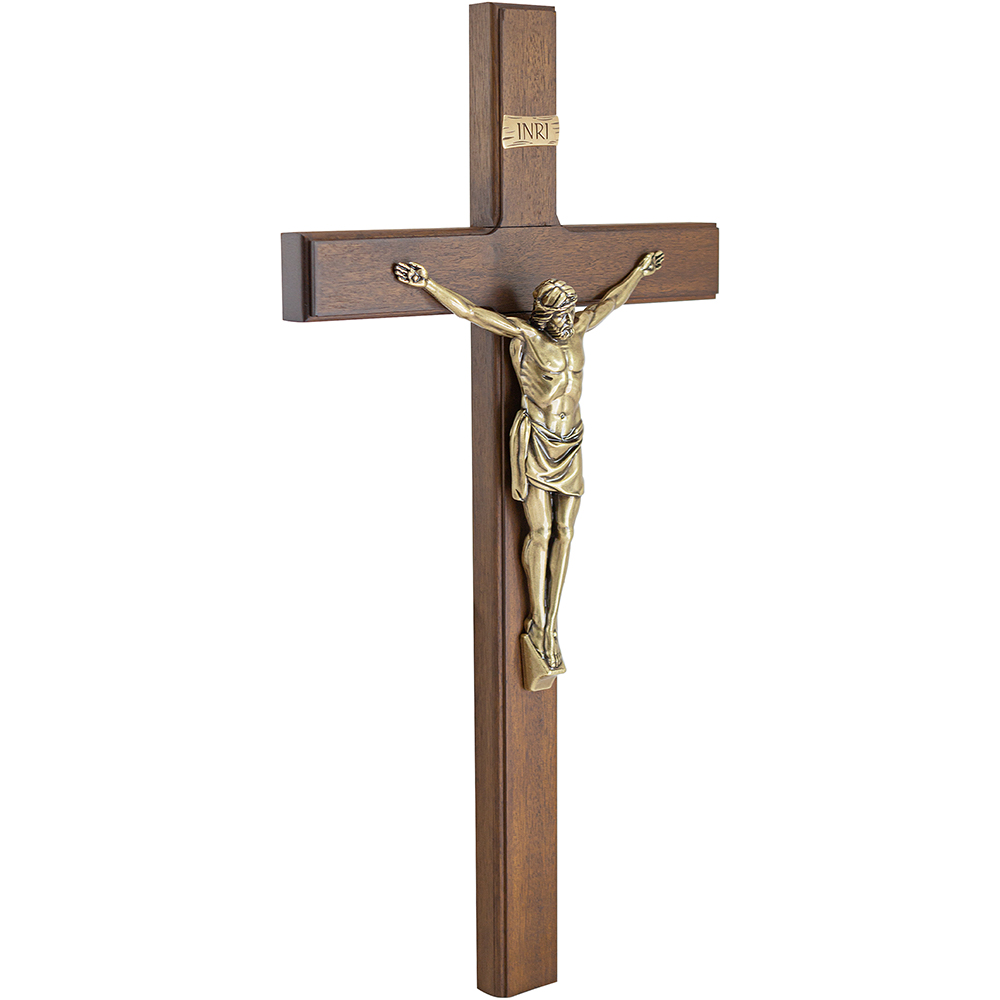 Adorno Cruz de Madeira Nobre com Aplique OV p/ Parede 39cm