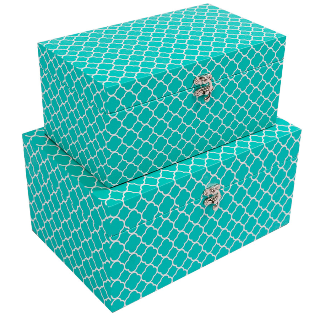 Kit 2 Caixas Organizadoras Em Mdf Vizapi M, G Azul Piscina