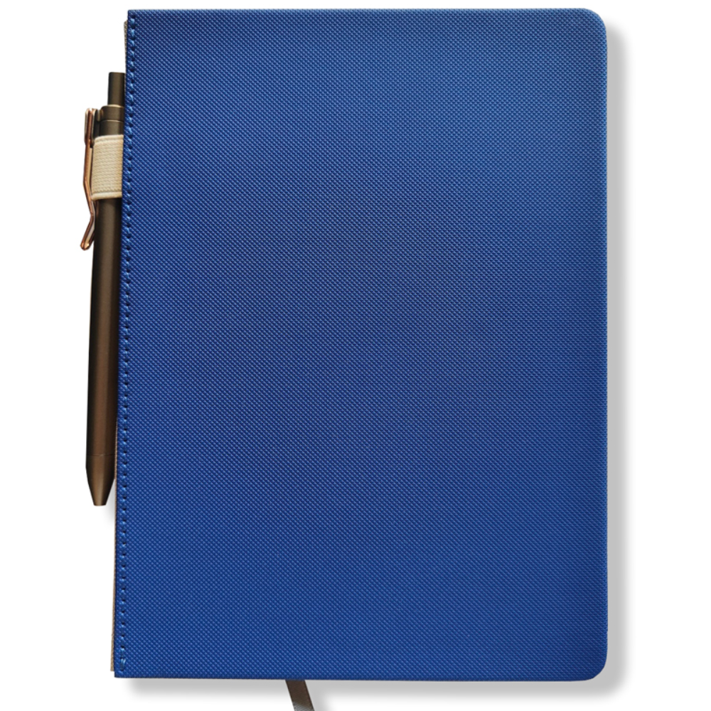 Caderneta A5 Pautada Azul com Caneta Fina Ideia